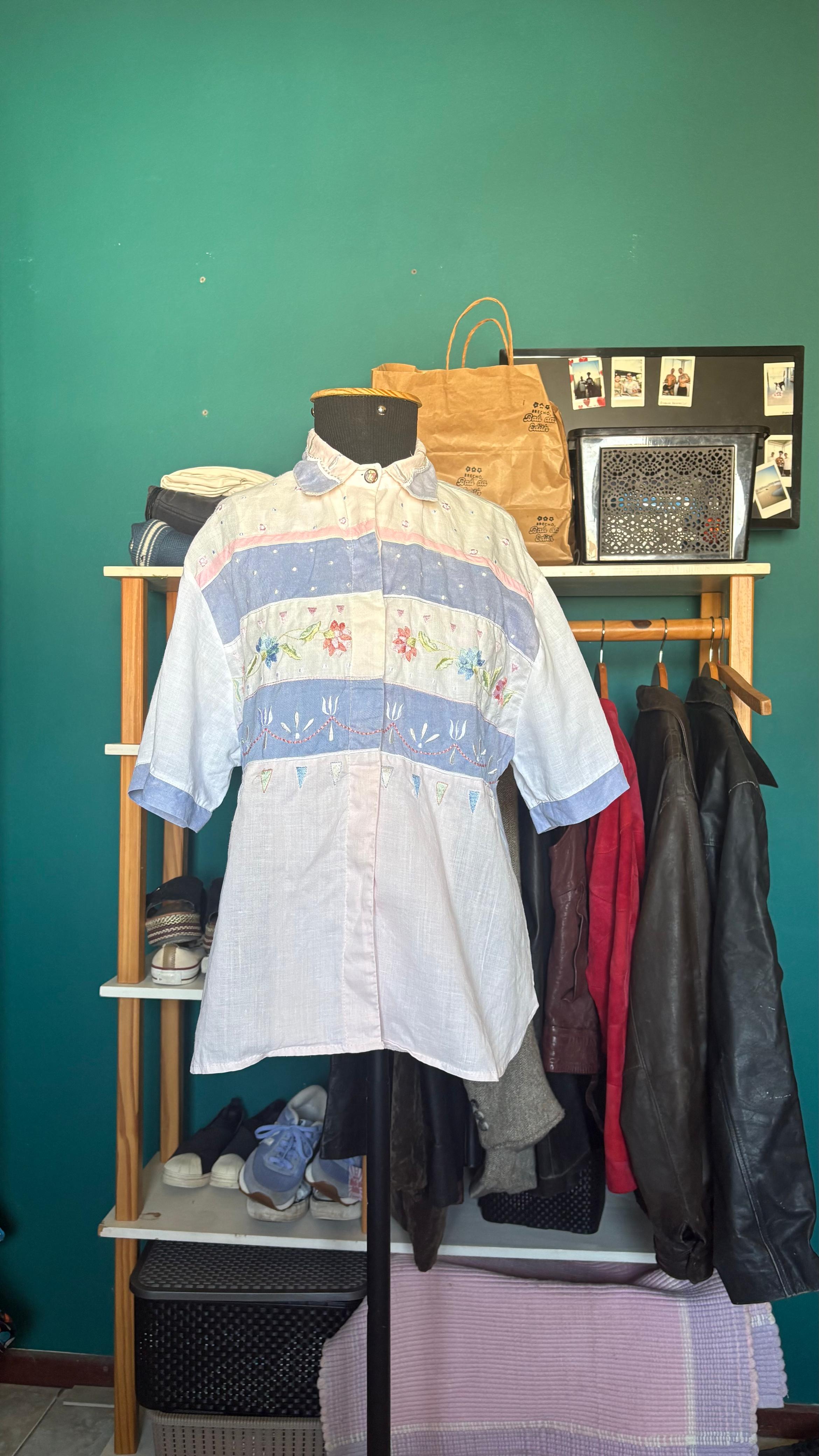 Camisa vintage CGC 100% rami com bordados
